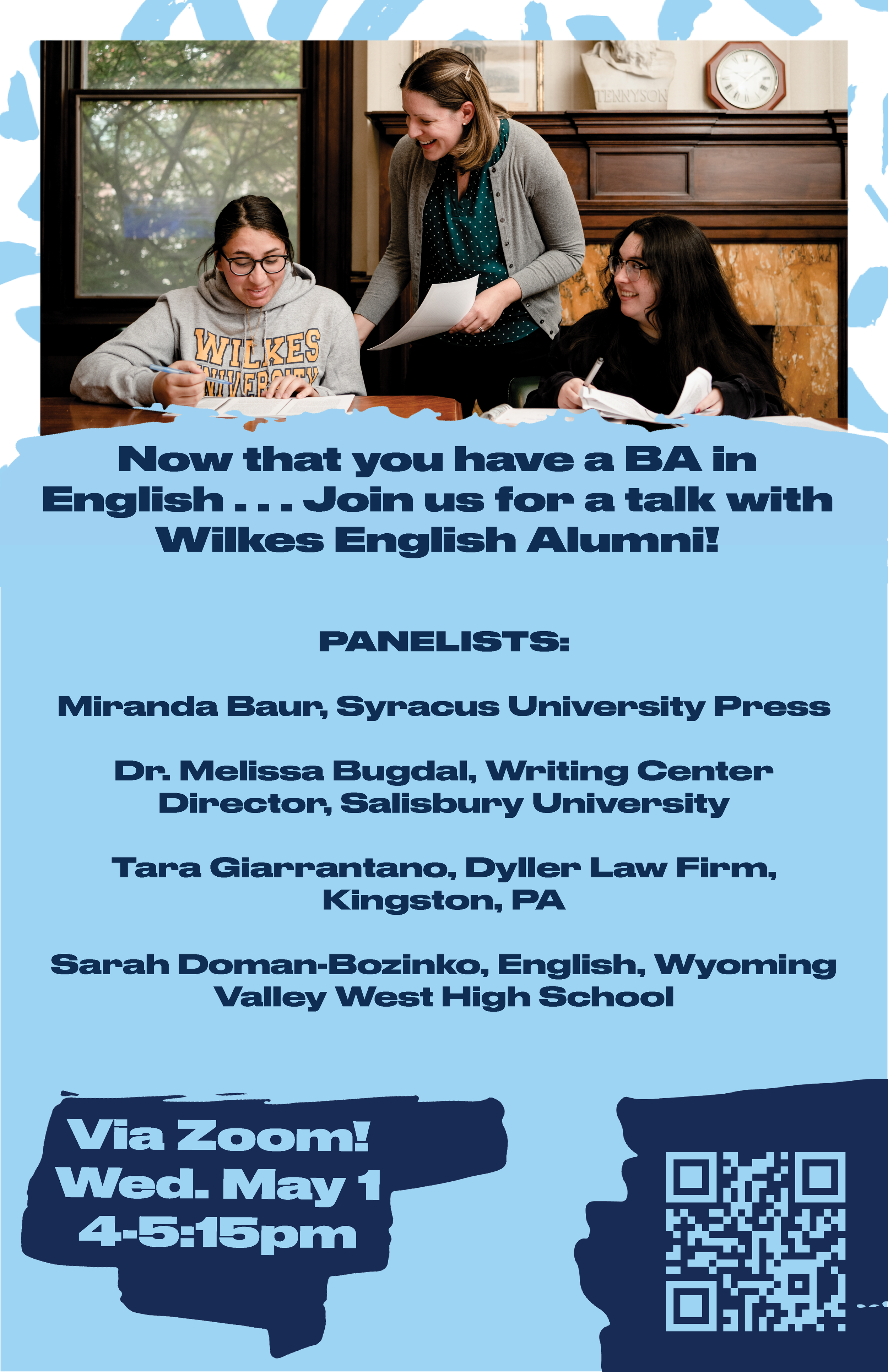 I was tasked with designing a poster to promote an upcoming virtual alumni panel hosted via Zoom. Following Wilkes University’s brand guidelines, I integrated key brand elements to create a design that is both captivating and inviting, effectively engaging the audience and enhancing the event's visibility.